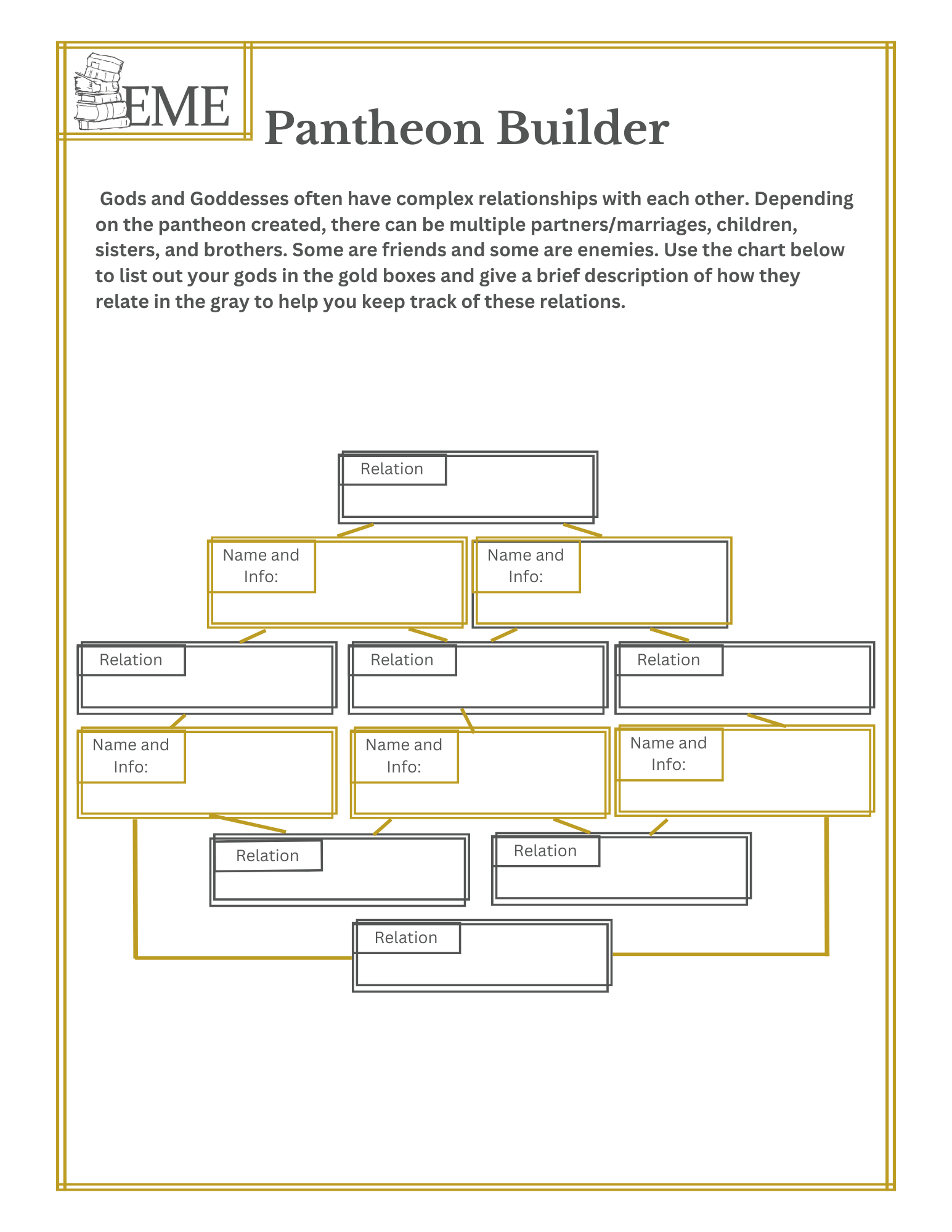Mythology is essentially a way of explaining a world through the eyes of a culture. For a writer, mythology is an essential element of world-building when working with fantasy. Whether it’s creating a pantheon, monsters, creatures, or the story that dictates how your world was created, The Magical Mythology Creator covers every aspect of a well-developed mythological system for world-building. This is a nearly 20-page workbook consisting of prompts, diagrams, information, and plenty of space to work thanks to its minimalistic design. Download and print extra copies to create more creatures, and monsters and further build out your pantheon using the pantheon builder.